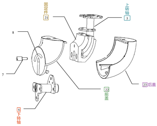 被訴決定認為:權利要求1相對于證據(jù)1的區(qū)別技術特征為:轉軸、下轉軸,所述上轉體與所述中轉體通過上轉軸轉動連接,所述中轉體與所述手柄通過下轉軸轉動連接,所述上轉軸與下轉軸垂直。實際解決的技術問題為:如何連接上轉體、中轉體和手柄并實現(xiàn)多角度調整。