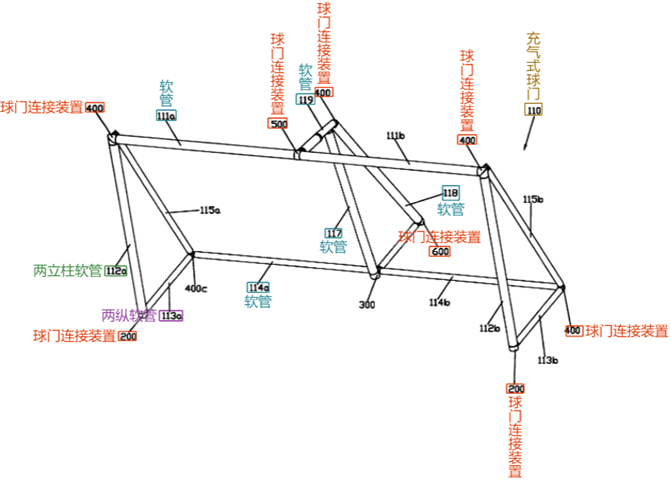 “一種充氣式球門,其包括:若干軟管;若干球門連接裝置,所述球門連接裝置用于連接所述軟管;所述若干軟管連接成球門狀,其中,所述若干球門連接裝置中至少一個具有充/排氣閥,其特征在于:所述球門連接裝置進一步包括:至少兩個接頭,所述接頭前端具有倒齒;固套,所述固套放置于所述接頭中以支撐所述接頭;以及外環(huán);所述外環(huán)套在所述倒齒上。”